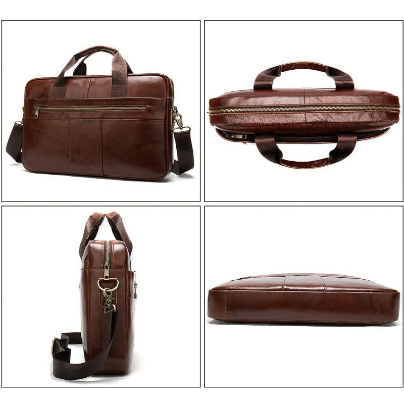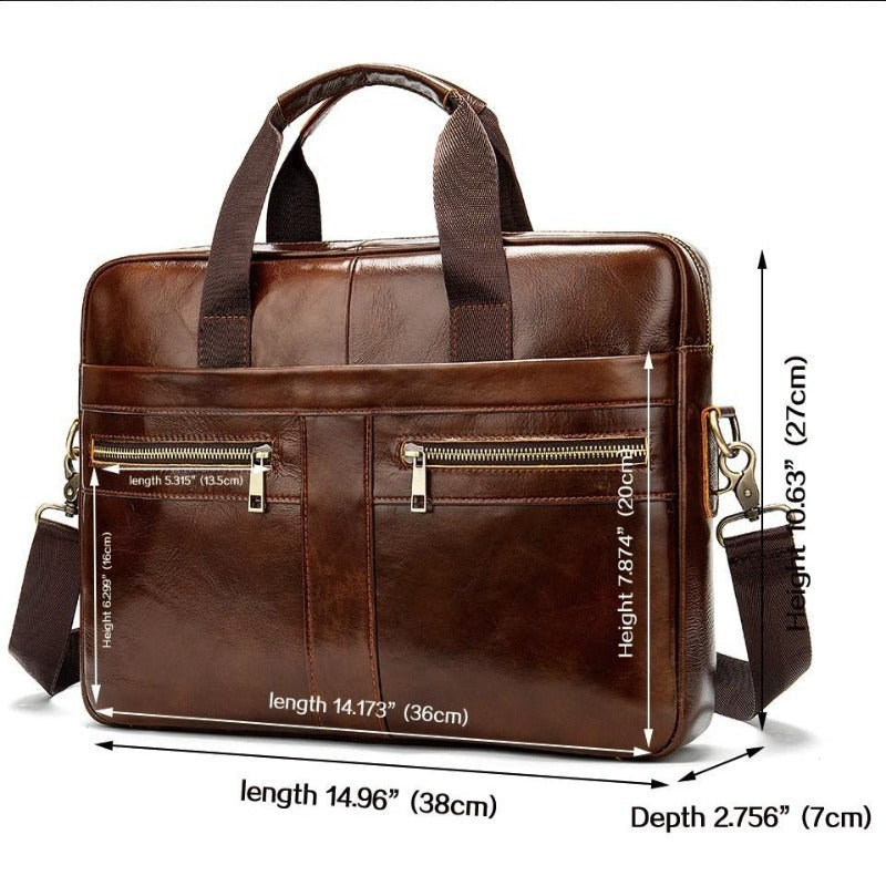 Our business shoulder bag has everything you need for a day in the office or out on the town. The dual handles are comfortable to carry, and outside pockets make it easy to organize your keys, cell phone, and other small items on the go. The genuine leather makes this business bag look sleek and professional, while an interior pocket keeps your tablet safe from bumps and dents. Plus, built-in features like an internal key ring holder make this business bag sturdy yet stylish.